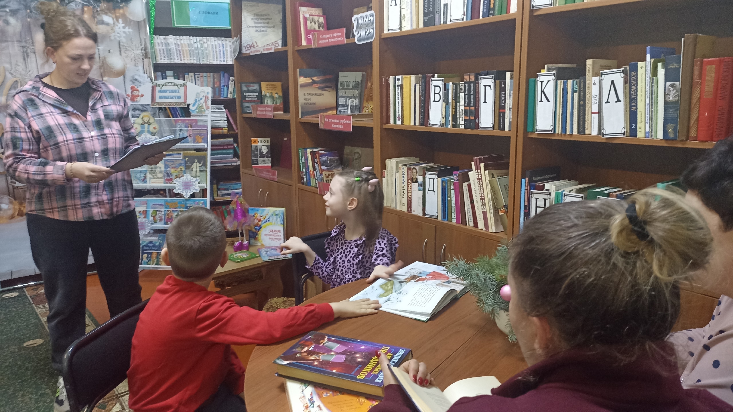 20 января 2025 г.в читальном зале Центральной сельской библиотеки Дмитриевского с. п. для читателей была организованна книжная выставка "Новогоднее волшебство". В экспозицию выставки вошли книги, которые станут надёжными помошниками в подготовке к новогодним праздникам. Также в качестве поздравления для детей прошла познавательная викторина, посвященная обычаям и традициям встречи Нового года. В начале сотрудник библиотеки рассказала гостям об истории и традициях праздника, о том как праздновали Новый год в России в разные эпохи и познакомила с главными героями праздника. После чего ребята отвечали на вопросы викторины "Новогоднее настроение", разгадывали загадки и узнали, как в разных странах называют Деда Мороза и Снегурочку.
